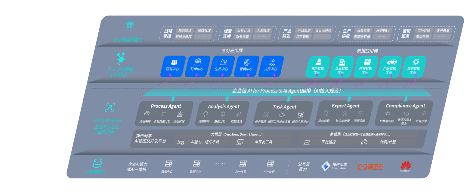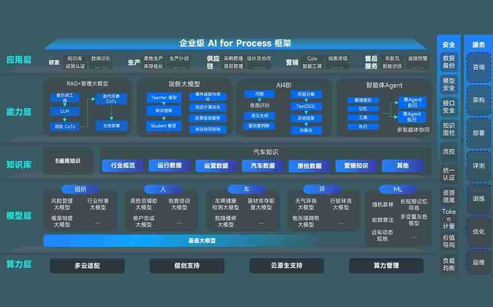 端到端的一站式AI工作空间深度融合了从企业战略规划到日常经营的全流程业务板块,,,,定向解决车企内部领域多、、、部门多、、链条长、、、、场景碎片化等难题,,,,支持车企快速构建以AI为核心的生产力写作体系,,实现任务执行与AI能力的无缝集成与交互